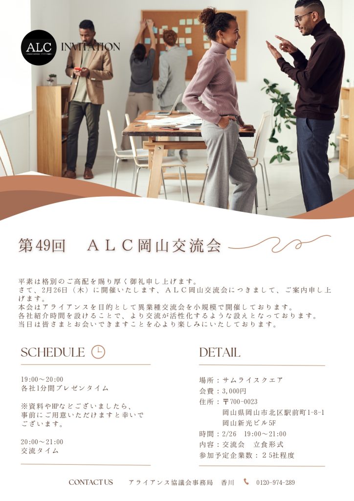 【2/26開催】第49回岡山アライアンス協議会のご案内 ≪人脈拡大したい方・初参加歓迎!≫